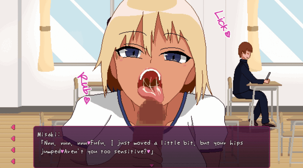 En este juego puedes jugar a la vida sexual diaria de una zorra JK que va por todas partes devorando hombres. El concepto del juego es «rápido y fácil» y no hay una historia complicada