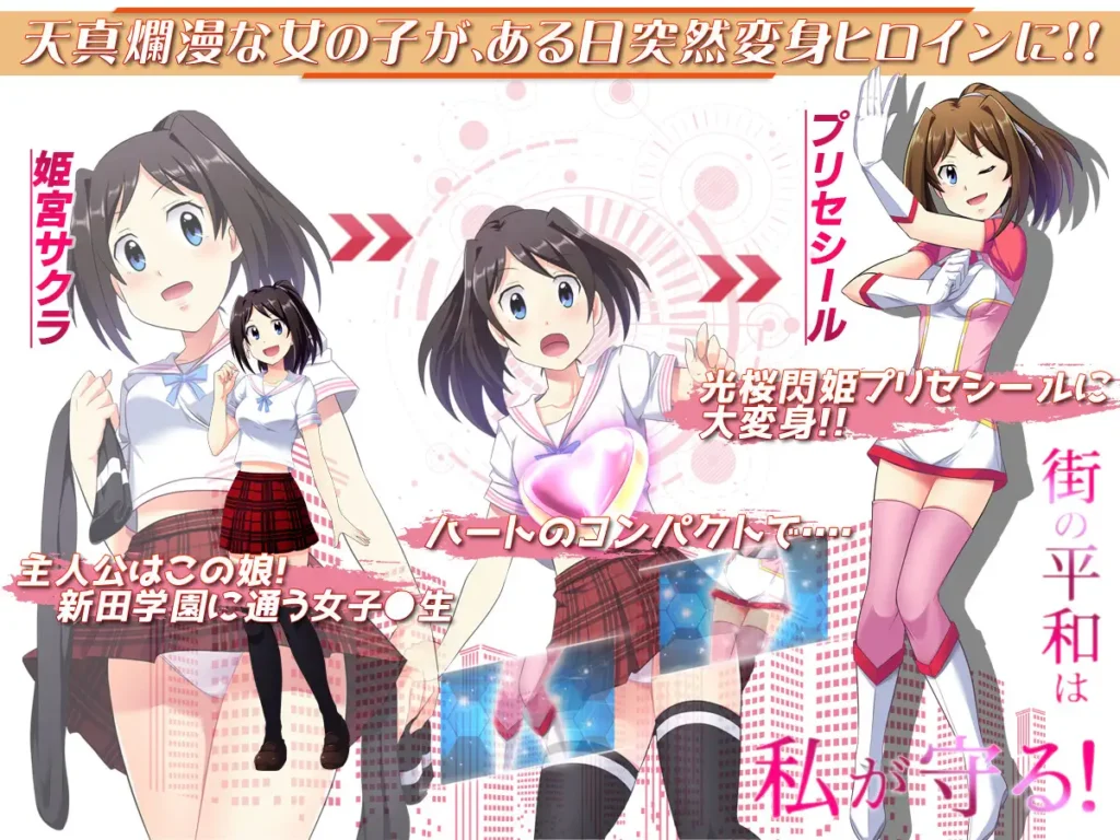 Corre el año 202x y algo pasa en la ciudad de Kamijiki. Están apareciendo extraños monstruos, y todo depende de Sakura Himemiya y su identidad de heroína oculta «Brillante Princesa Flor Prececile» para proteger la ciudad. Sin embargo… El comandante de los monstruos, una secta malvada y su taimado líder tienen otros planes. ¿Podrá Sakura resolver el misterio y derrotar a los malvados? ¿Qué destino le espera? Tendrás que descubrirlo tú mismo…
