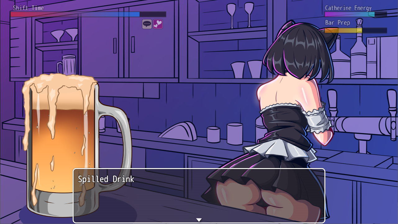 v0.3.7a Añadida nueva escena al bar. Esta escena incluye 19 imágenes/variaciones. Añadida nueva escena en la mesa de billar. Esta escena incluye 32 imágenes/variaciones. Añadida nueva escena en el salón recreativo. Esta escena incluye 35 imágenes/variaciones. Todas estas escenas son muy artísticas. Estos son los tipos de escenas para los que hice este juego. Si querías saber cuánto iba a aumentar el entrenamiento de Catherine, esto te dará una buena idea de hacia dónde va la historia.