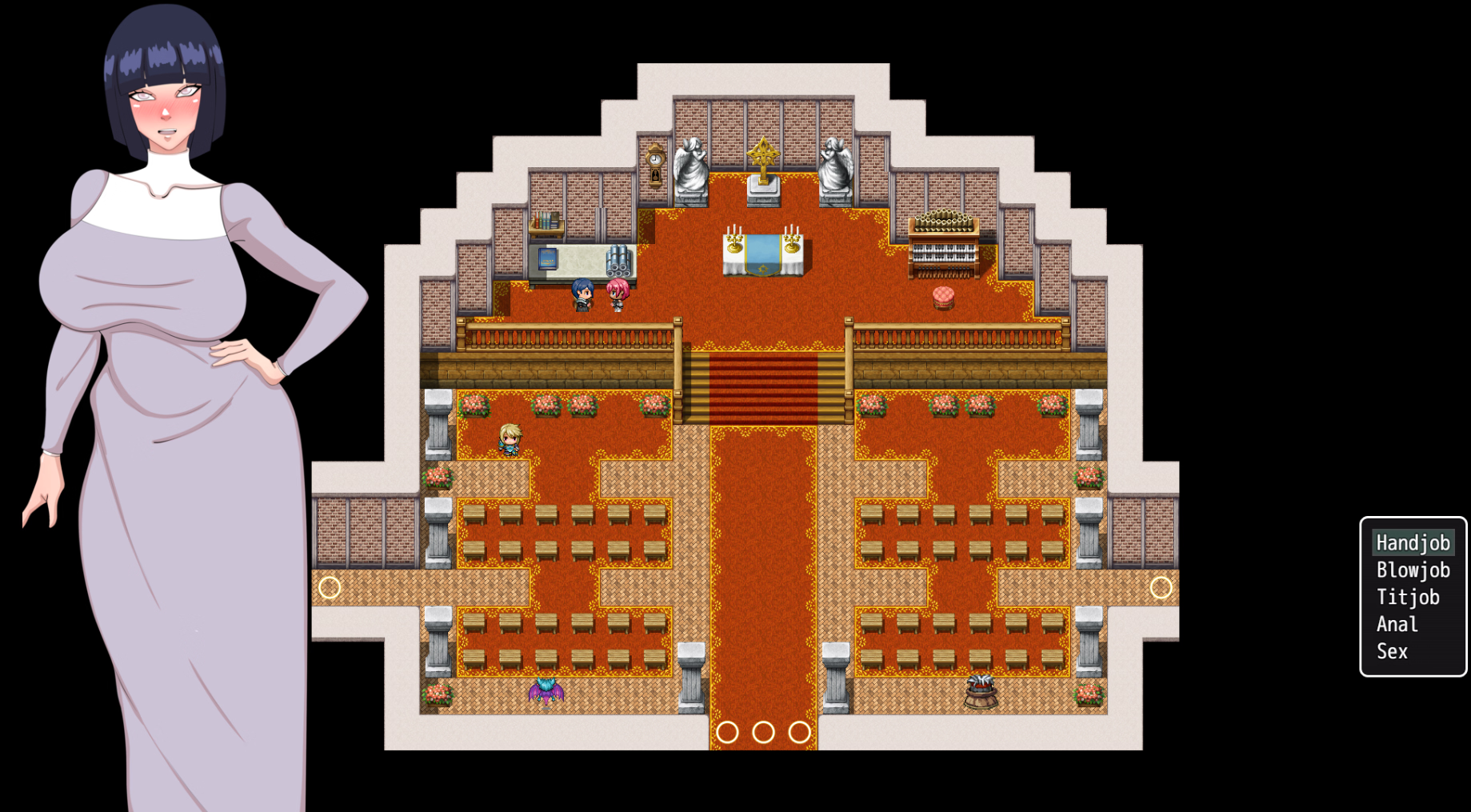 Gameplay: Tu principal objetivo es corromper a dos de las monjas compañeras de Giovanna. Para lograrlo, debes aumentar el nivel de corrupción de Giovanna, ya que se resistirá a ciertas acciones si su corrupción es demasiado baja. A lo largo del juego, te encontrarás con varios eventos menores que te ayudarán a aumentar su corrupción. Consulta el recorrido oficial para obtener información más detallada, incluidas las escenas que aún están en desarrollo, para evitar contratiempos innecesarios.
