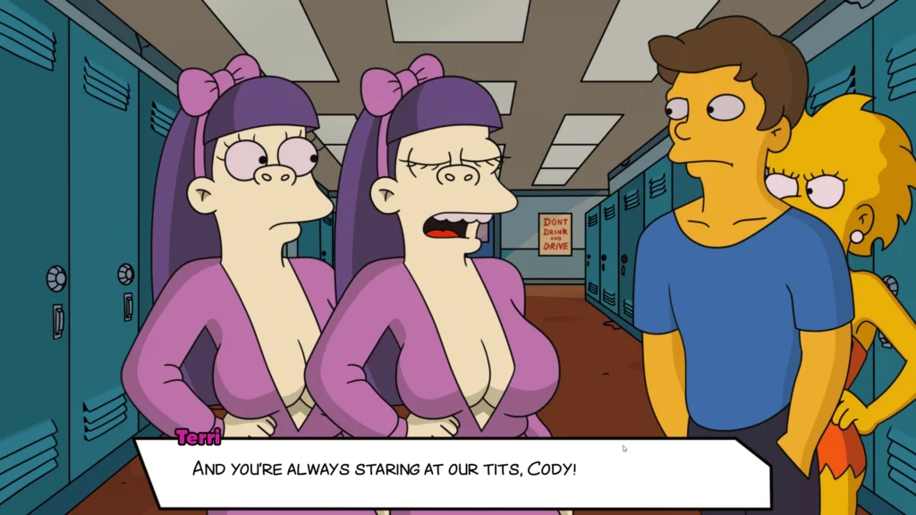~The Simpsons Dating Sim en Español~ Vive en casa de los Simpson, termina el instituto y sal con los personajes de los Simpson. Juegas como un chico en edad universitaria, que tiene que asistir a una clase de bachillerato para adultos llena de chicas que no terminaron el bachillerato a tiempo. Todos los personajes son mayores de 18 años.