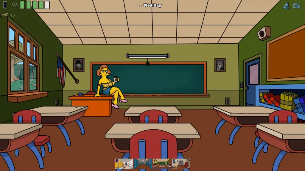 v0.3.1 Evento de cena repetible para Edna Una nueva conversación y un nuevo evento de cita para Marge Simpson. Tres escenas de sexo animadas. Muchas otras animaciones para la historia. Animación creada para Marge Aspirando Un Nuevo dibujo añadido a la escena de Lisa Cambiándose de Baño. Nueva Locación Creada – Frente a la Casa de Edna. Mejoras menores de escritura Mejoras menores de arte Msc – Sala de estar. Algunos otros ajustes. Tres nuevos personajes dibujados (en eventos de la historia) Tres nuevos fondos para la historia: Prisión, La Trufa Dorada, Fuera de la Trufa Dorada Edna te llamará si llegas tarde a la cita o faltas. (Perderás puntos de amor) Puedes llamar a Edna Puedes llamar al restaurante para comprobar los precios (el número de teléfono se añade al teléfono). Actualización a la nueva versión del motor del juego, Renpy 8.2.3. Código del juego cambiado para compatibilidad con esta nueva versión. Se ha eliminado el sombreado de personajes, excepto en algunas escenas dramáticas de la historia. Esta elección estilística se ajusta mejor al estilo visual de la serie. También libera tiempo que puede utilizarse para crear más contenido. Se ha reducido el ancho de línea de todas las imágenes de la historia, los personajes, la ubicación y el fondo. Limpieza asociada a los cambios de ancho de línea: Principalmente limpieza de derrames de relleno y huecos de vectores al disminuir el ancho. Mejoras/limpiezas menores en algunas imágenes mientras revisaba y editaba todo. Algunos cambios menores en fondos y elementos de la interfaz gráfica para armonizar con el nuevo estilo. La luna y las estrellas cambian de color cuando duermes. Corregido error que impedía a Ralph parpadear Añadidas dos localizaciones que puedes espiar desde tu dormitorio, el dormitorio de Milhouse y el salón de los Van Houten Creadas y añadidas dos animaciones para las localizaciones de espionaje (1 para cada una).